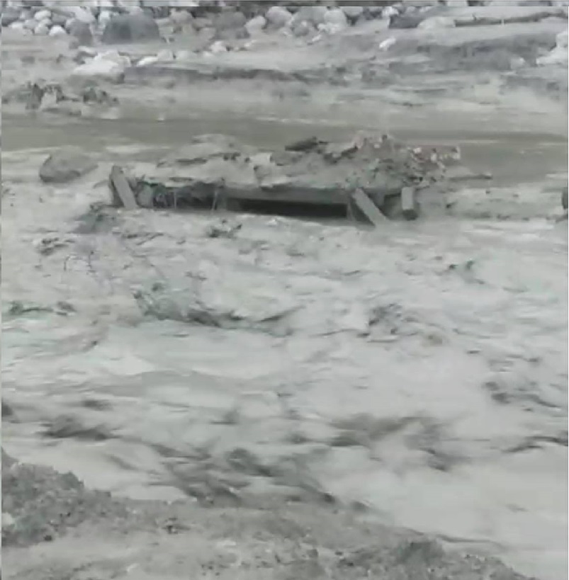 यस्तै, बाढीले मेलम्ची जोड्ने चुनौटेमाथिको रातो पुल पनि जोखिममा परेको छ ।