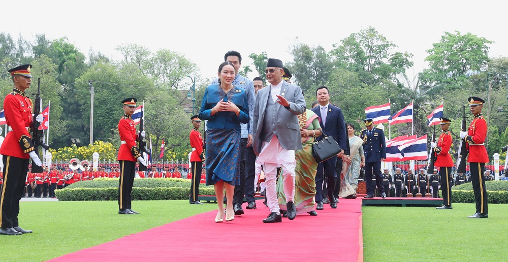 त्यसअघि थाइल्याण्डको सरकारी भवनमा प्रधानमन्त्री ओलीको समकक्षी शिनावात्राले स्वागत गर्नुभएको थियो ।