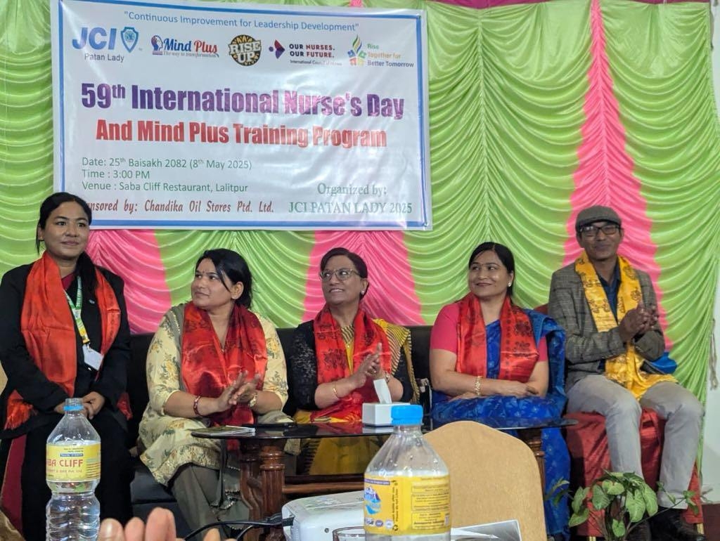 ५९औं अन्तर्राष्ट्रिय नर्सिङ दिवसको अवसर पारेर विहिबार ललितपुरमा आयोजित माइन्ड प्लस तालिम कार्यक्रम सन्चालन गरिएको हो। जेसिस पाटन लेडीले आयोजना गरेको सो तालिम कार्यक्रममा नर्सिङ सेवामा कार्यरत ३०जना नर्सहरूको सहभागिता रहेको थियो।