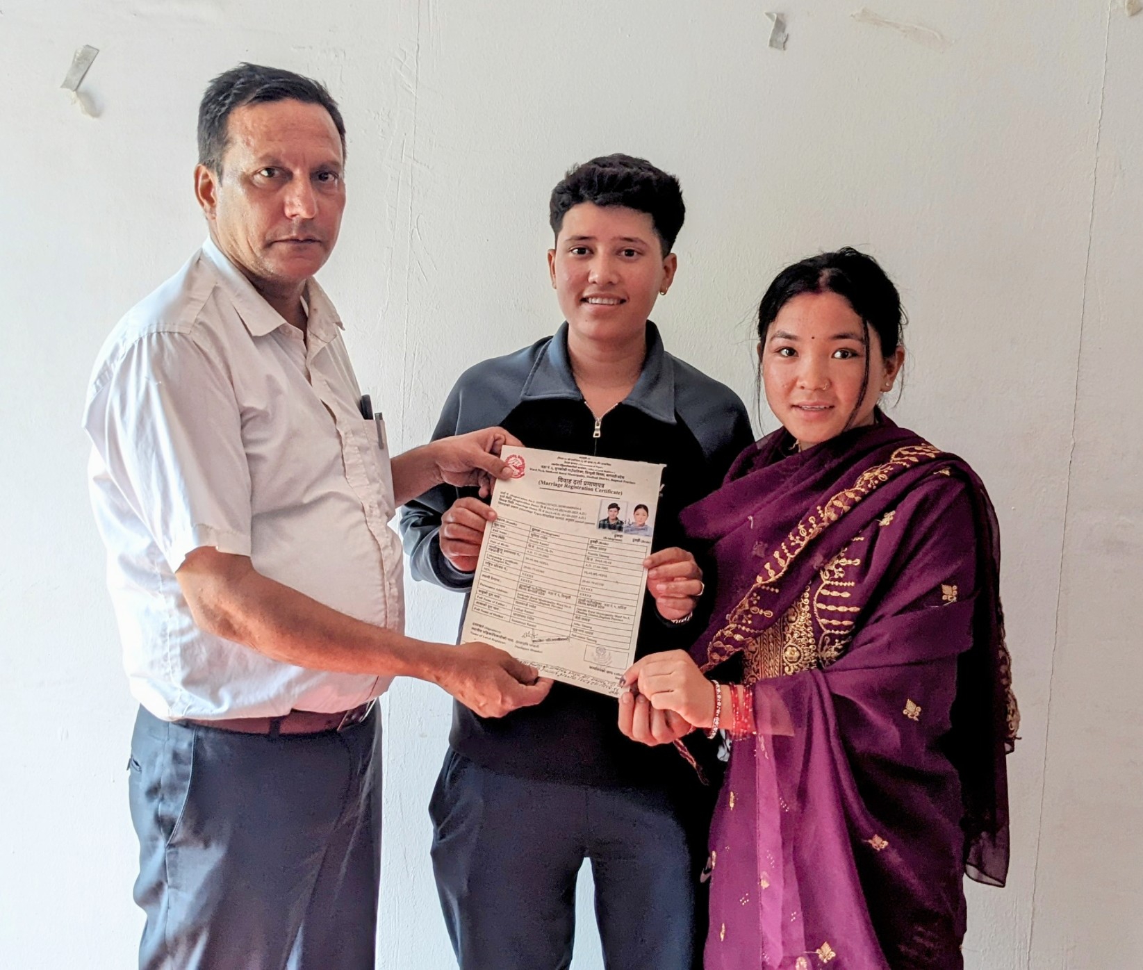 नागरिकतामा दुवैको महिला भएकाले विवाह दर्ता गर्न अध्ययन गर्ने बताएका सिन्धुलीको सुनकोशी गाउँपालिका वडा नं ६ का सचिव डण्डपाणि भण्डारीले ठ्याक्कै एक सातामा प्रमाणपत्र जारी गर्न तयार भए।