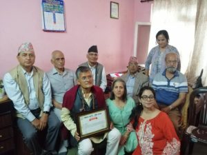 उक्त अवसरमा पोषण पाण्डे तीर्थ सदनले काठमाडौँ धुम्बाराही निवासी साहित्यकार तथा समालोचक युवराज मैनालीलाई नेपाली साहित्यमा पुर्याउनुभएको योगदानकाे कदर गर्दै