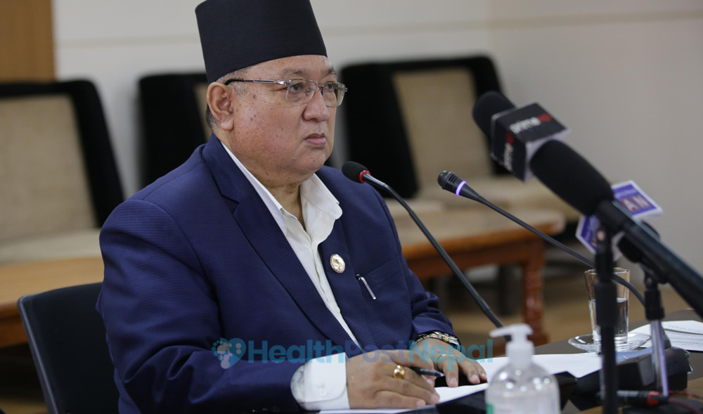उनले अघिल्लो सरकारको पालामा ९७ लाख मात्रा खोप प्राप्त गरी असार मसान्तसम्म ४२ लाख खोप जनतालाई उपलब्ध गराइएको बताउँदै नयाँ सरकार आएपछि हिजोसम्म ७५ लाख खोप लगाइएको जानकारी दिए । उनले भने– ‘वर्तमान सरकारले खोपलाई अभियानका रुपमा प्रत्येक दिन १ लाख ५० हजारदेखि २ लाख खोप लगाउने थालनी गरेको छ । असोज मसान्तसम्म भुटानबाट प्राप्त समेत १ करोड ८ लाख प्राप्त हुने सुनिश्चित भएको छ । खोपको सुनिश्चित भएसँगै ३३ प्रतिशत जनतालाई खोप लगाउने कार्यक्रम राखिएको छ ।’