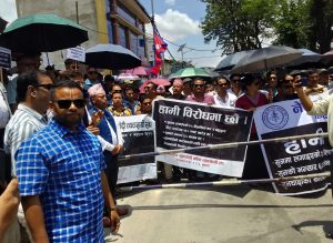 काठमाडौं, असार २० – नेपाल सुनचाँदी कला व्यवसायी संघको नेतृत्वमा काठमाडौंको माइतीघर मण्डलामा आज भव्य विरोध प्रदर्शन सम्पन्न भएको छ। सरकारले सुनमा लगाएको २ प्रतिशत विलासिता कर र बहुमूल्य पत्थर तथा हिरामा लगाइएको १३ प्रतिशत मूल्य अभिवृद्धि कर (भ्याट) को विरोधमा गरिएको यस प्रदर्शनमा उपत्यका र विभिन्न जिल्लाबाट आएका हजारौं सुनचाँदी व्यवसायी, कालिगढ र श्रमिकहरूको सहभागिता रहेको थियो।