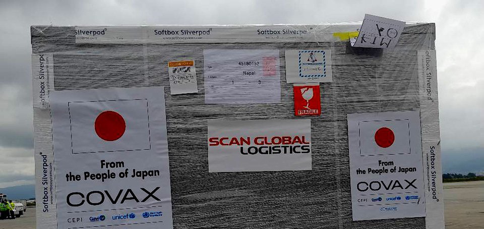 जापानबाट दुई लाख मात्रा अष्ट्राजेनिका खोप काठमाडाैं ल्याइएकाे छ । विहान ९:३० बजे कतार एयरबाट भित्रिएको छ । कोभ्याक्स सुविधा अन्तर्गत नेपाललाई जापानले १६ लाख खोप दिने प्रतिबद्धता अनुरुप सो खोप आइपुगेको हो । यसअघि नै नौ लाख डोज खोप काठमाडौं आइपुगेको थियो ।