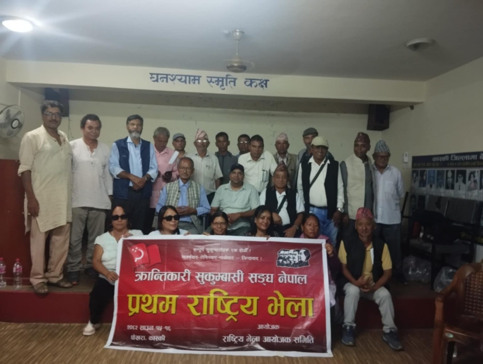 क्रान्तिकारी सुकुम्बासी संघ नेपालको २०८२ साउन १५ र १६ गते पोखरामा प्रथम राष्ट्रिय भेला सम्पन्न भएको छ।राष्ट्रिय भेलामा प्रमुख अतिथि क्रान्तिकारी कम्युनिष्ट पार्टी नेपालका वरिष्ठ पोलिट्ब्युरो सदस्य सिताराम तामाङ्ग हुनुहुन्थ्यो भने अन्य अतिथिहरुमा पोलिट्ब्युरो सदस्य केश बहादुर परियार,केन्द्रिय समिति सल्लाहकार सदस्य द्वय रामजी थापा युवराज न्यौपाने,रक्तिम सांस्कृतिक परिवारका केन्द्रिय अध्यक्ष नारायण शर्मा ,पार्टीका केन्द्रिय सदस्यहरु बाबुराम सुबेदी,बिक्रम थापा,भिम श्रीस,सुशीला थापा ,दिपक गुरुङ,नेवा मुक्ति मोर्चाका केन्द्रिय सदस्य निल प्रसाद श्रेष्ठ,क्रान्तिकारी महिला संघकि केन्द्रिय सदस्य देवी थापा,जनसाँस्कृतिक महासंघ बाट अग्निराज पौडेल ,अखिल (क्रान्तिकारी) केन्द्रिय सचिवालय सदस्य दिनेश जोशी,अग्राधार टि भिका सञ्चालक राम घले परियार,अखिल नेपाल तमु राष्ट्रिय मुक्ति मोर्चाकि केन्द्रिय सदस्य गंगा गुरुङ लगायत हुनुहुन्थ्यो ।