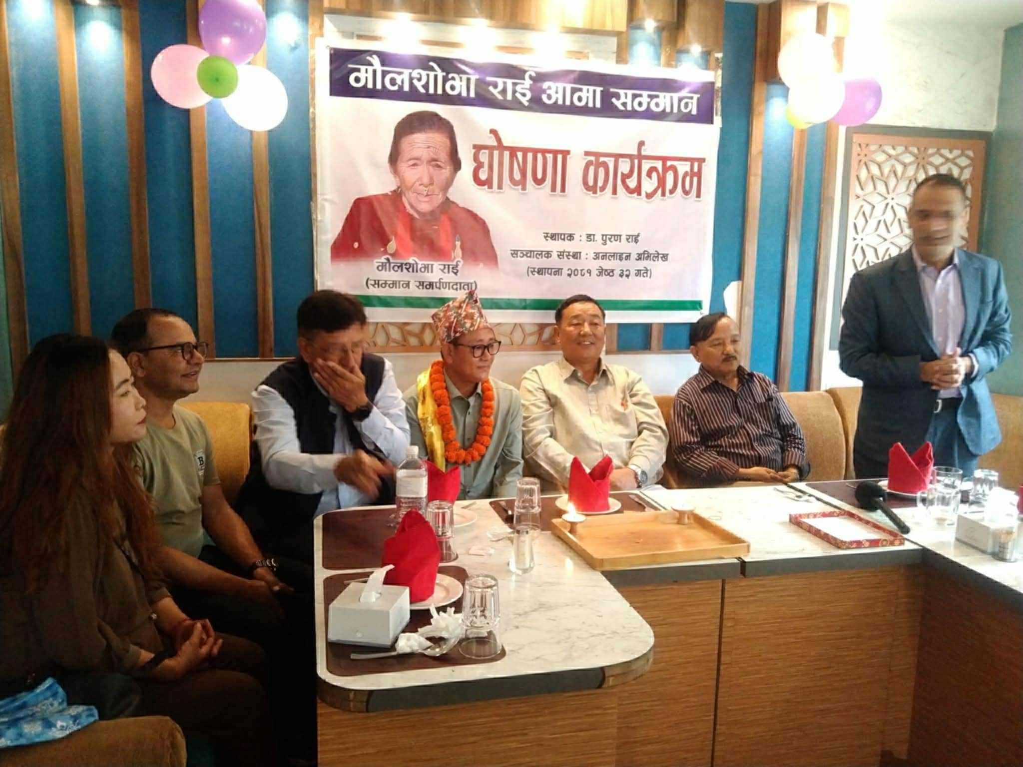 गत वर्षदेखि प्रदान गरिदै आएको उक्त सम्मान अनलाइन अभिलेख प्रा.लि.का संस्थापक मौलाशोभा राईका सुपुत्र साहित्यकार डा.पुरण राईले उक्त सम्मानको स्थापना गरेका हुन् ।