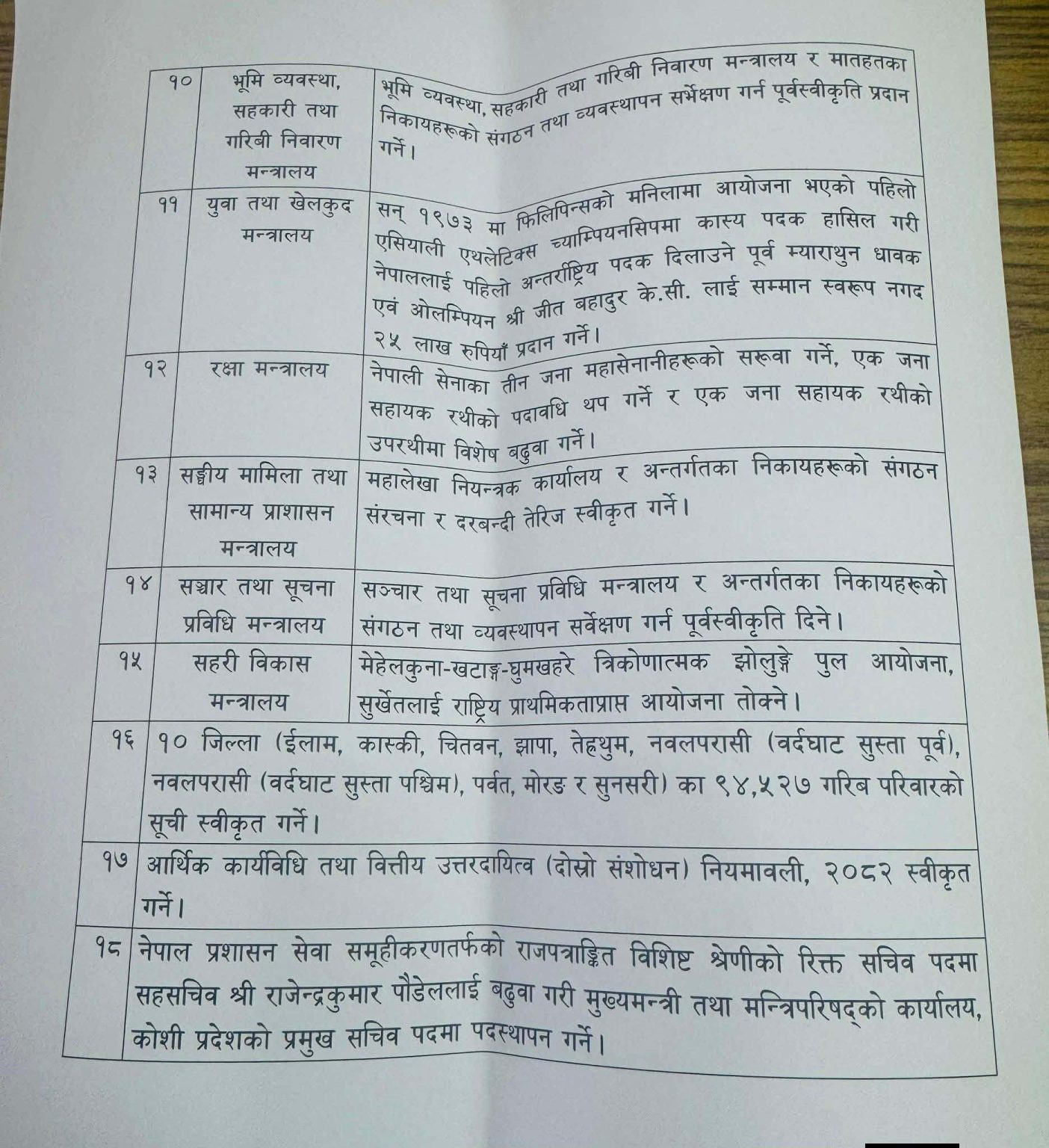 मंगलबारको मन्त्रिपरिषद बैठकले १८ निर्णय गरेको छ ।
