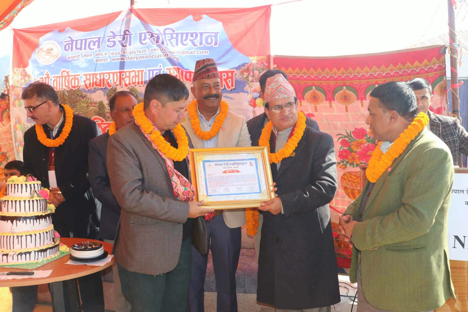 बागमती प्रदेशका माननीय कृषि तथा पशुपन्छी विकास मन्त्री मधुसूदन पौडेल, एसोसिएसनका अध्यक्ष प्रल्हाद दाहाल, उद्योग बाणिज्य संघका केन्द्रिय उपाध्यक्ष सुरकृष्ण बैद्यलगायतले सो सम्मान पत्रिकाका प्रकाशक÷प्रधान सम्पादक नवराज बजगाईलाई प्रदान गरेका हुन । पत्रिकाले नियमित स्तम्भकै रुपमा कृषि डायरी र पशु स्वास्थ्य डायरी प्रकाशनका अलावा यो क्षेत्रका विज्ञहरुको सन्देश, बिचार र जानकारीहरुलाई प्राथमिकताका प्रकाशन गरी दुरदराजसम्म पु¥याउन गरेको योगदानको उच्च सम्मान गर्दै नेपाल डेरी एसोसिएसनको नवौँ राष्ट्रिय महाधिवेशन तथा २७औं वार्षिक साधारण सभाको अवसरमा संस्थागत सम्मान गरिएको हो ।