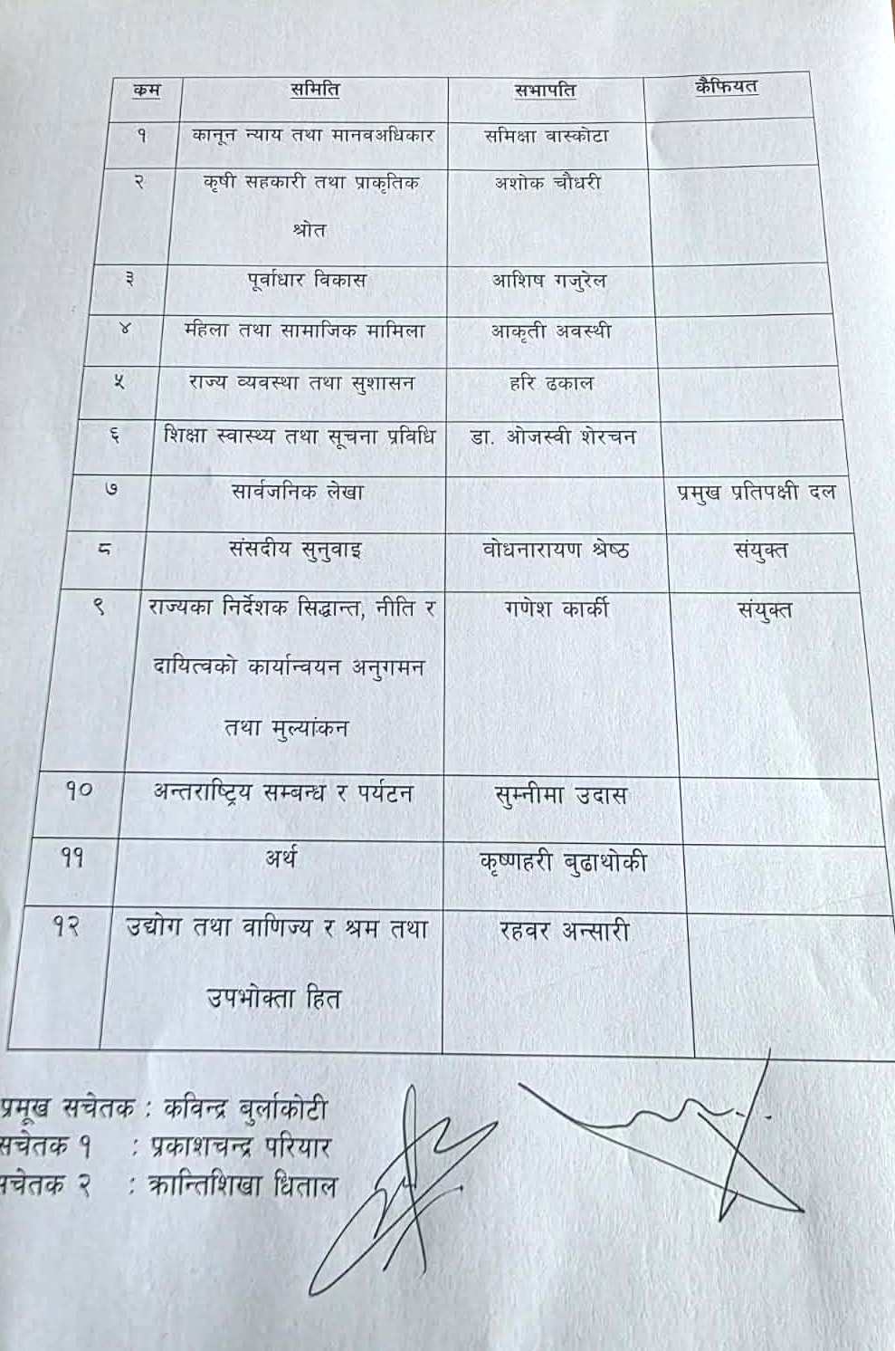 संसदीय समिति सभापतिका लागि तपशिल उमेद्वार रहेका छन् ।
